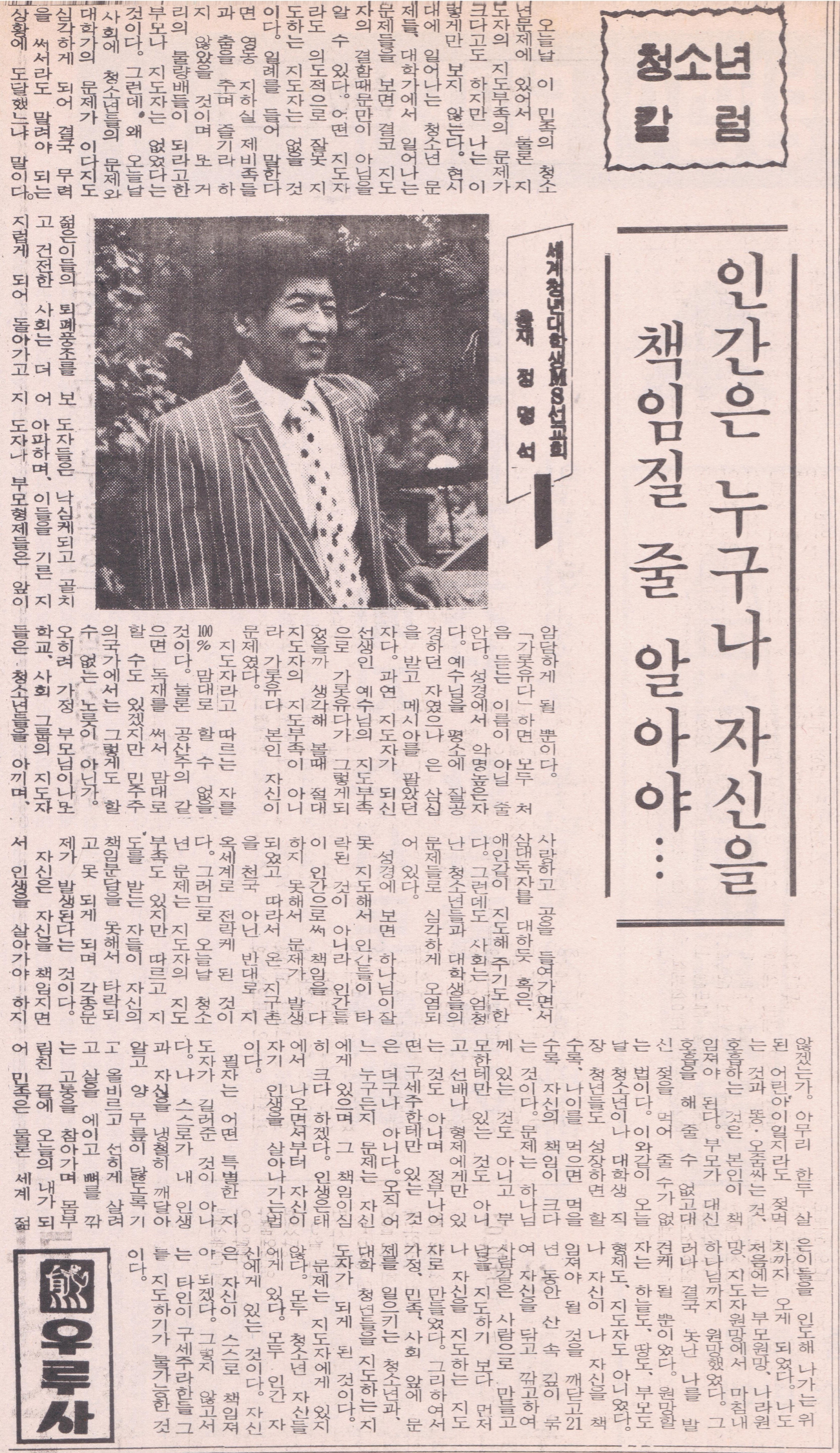 1988년도, 기독교복음선교회 정명석총재(당시, 세계청년대학생MS선교회)의 주간 종합 청소년 신문 연재 칼럼
